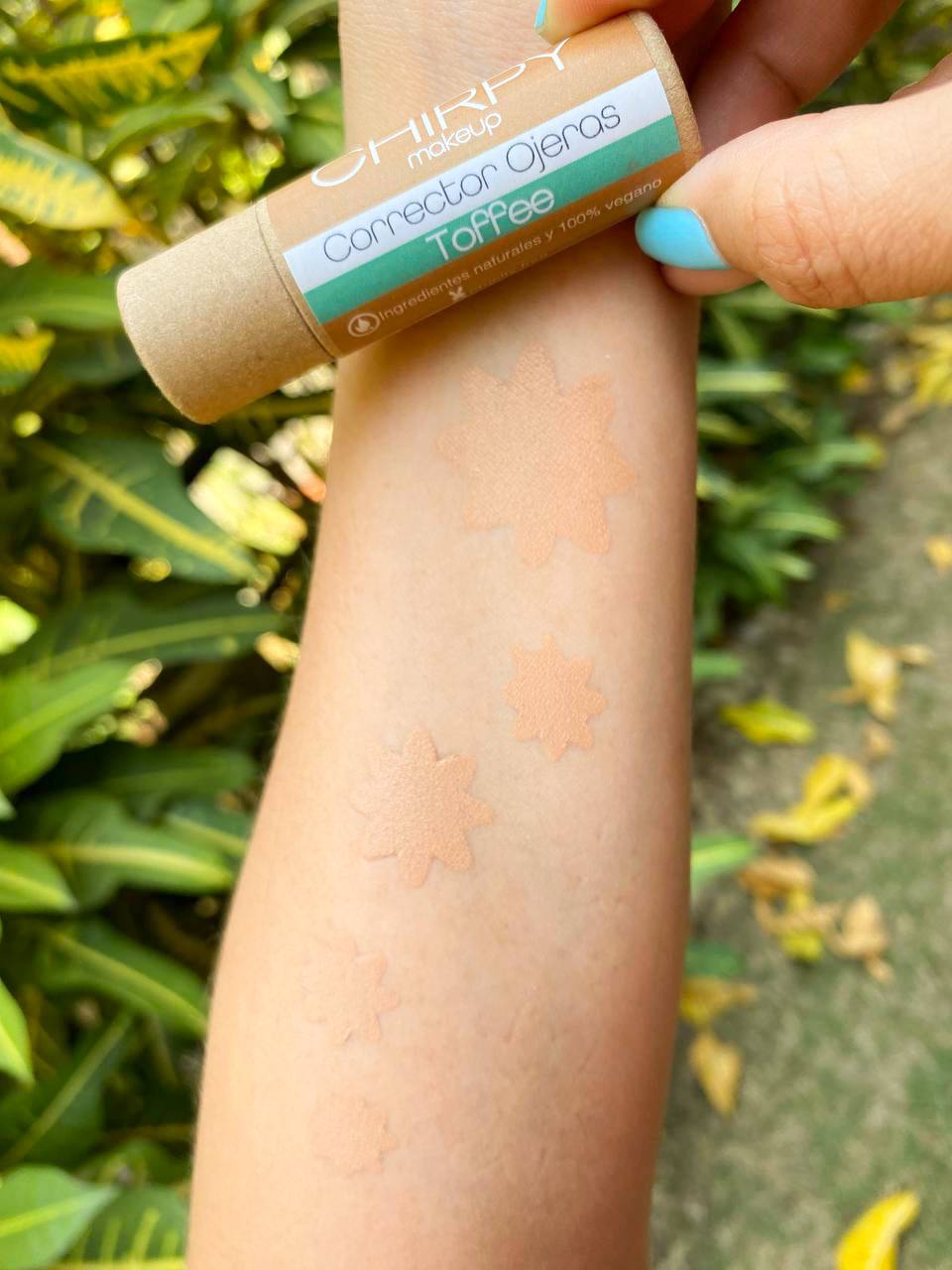 "Corrector de ojeras Chirpy Makeup — cobertura natural con hidratación intensa. Enriquecido con aceite de aguacate y ceras vegetales para regenerar y mantener la piel luminosa. Tono: Piel Canela."