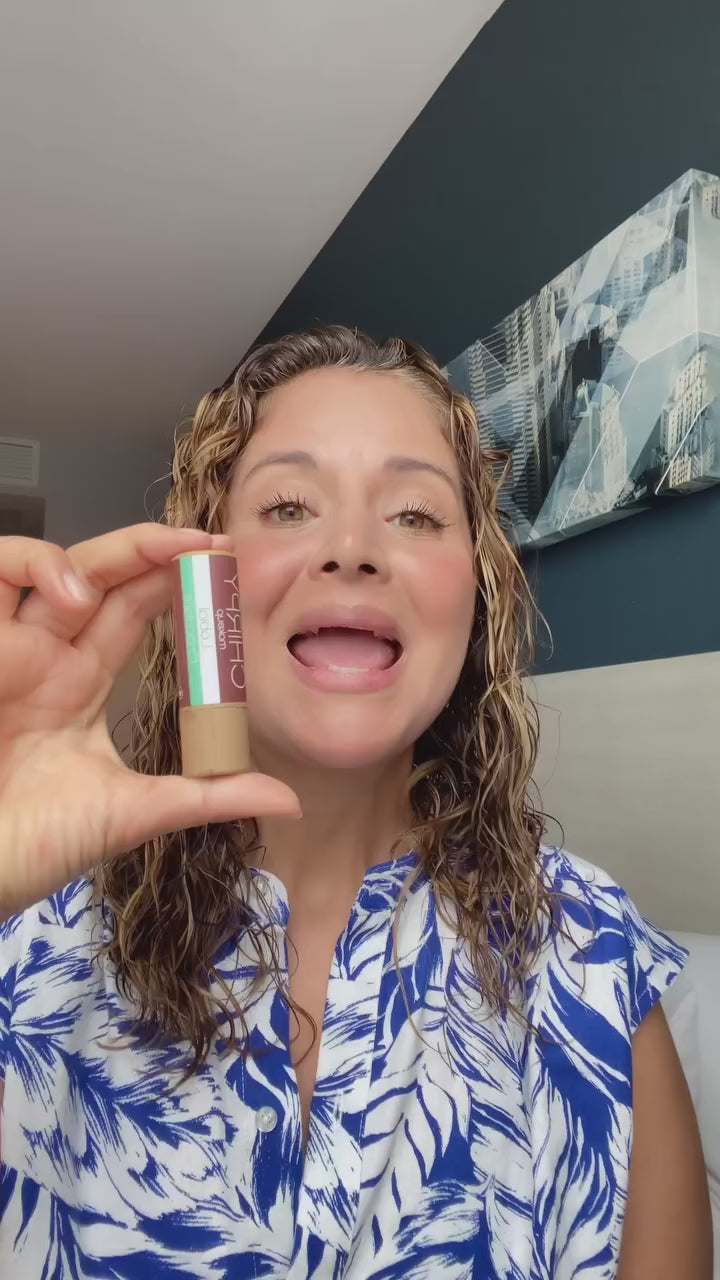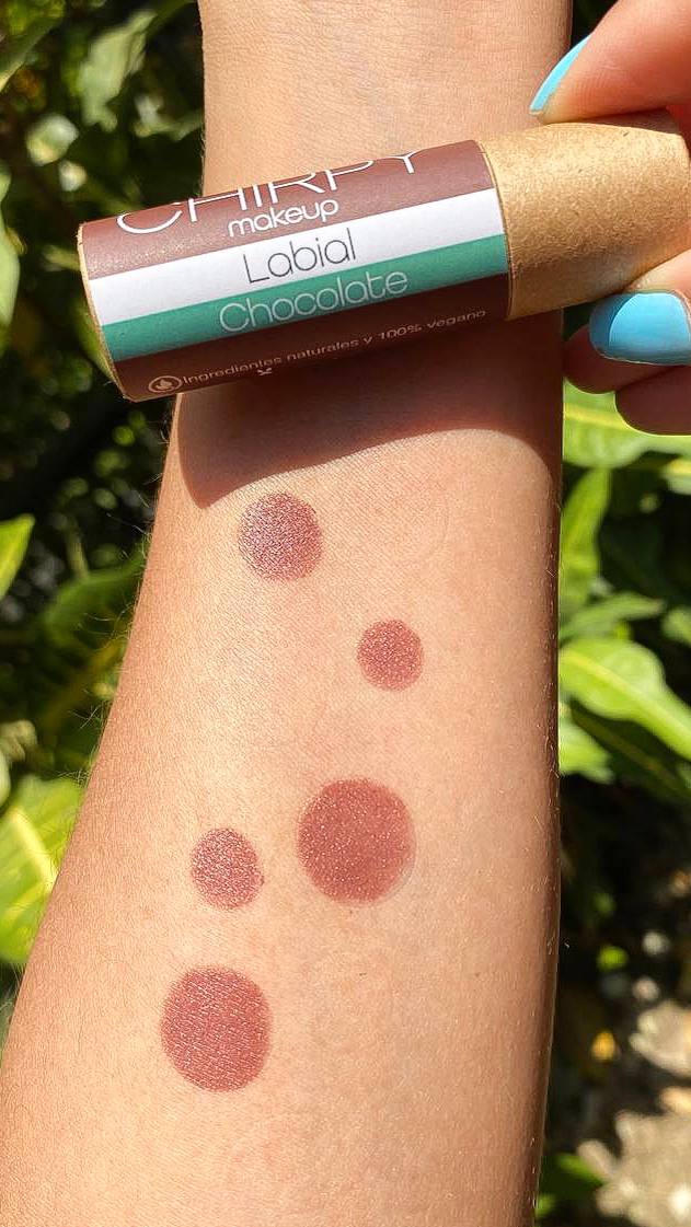 El labial Chirpy Makeup deja los labios suaves e hidratados. De textura cremosa, fijación duradera y color chocolate, Con 5 diferentes formas de uso. Rico en aceite de jojoba, ricino, mantecas y ceras vegetales. Mientras el aceite de jojoba nutre y se absorbe rápidamente, el de ricino forma una barrera protectora que sella la hidratación. Alivia labios secos o agrietados, regenerándolos y dejándolos suaves y saludables.