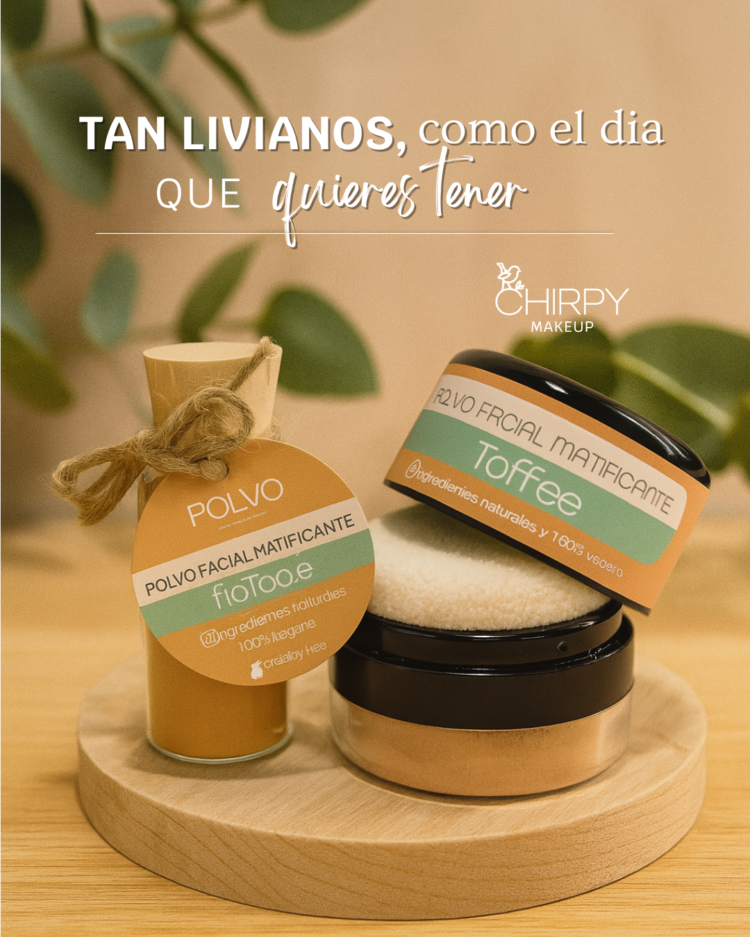 - Polvo matificante sin talco, controla el brillo sin resecar ni acartonar.